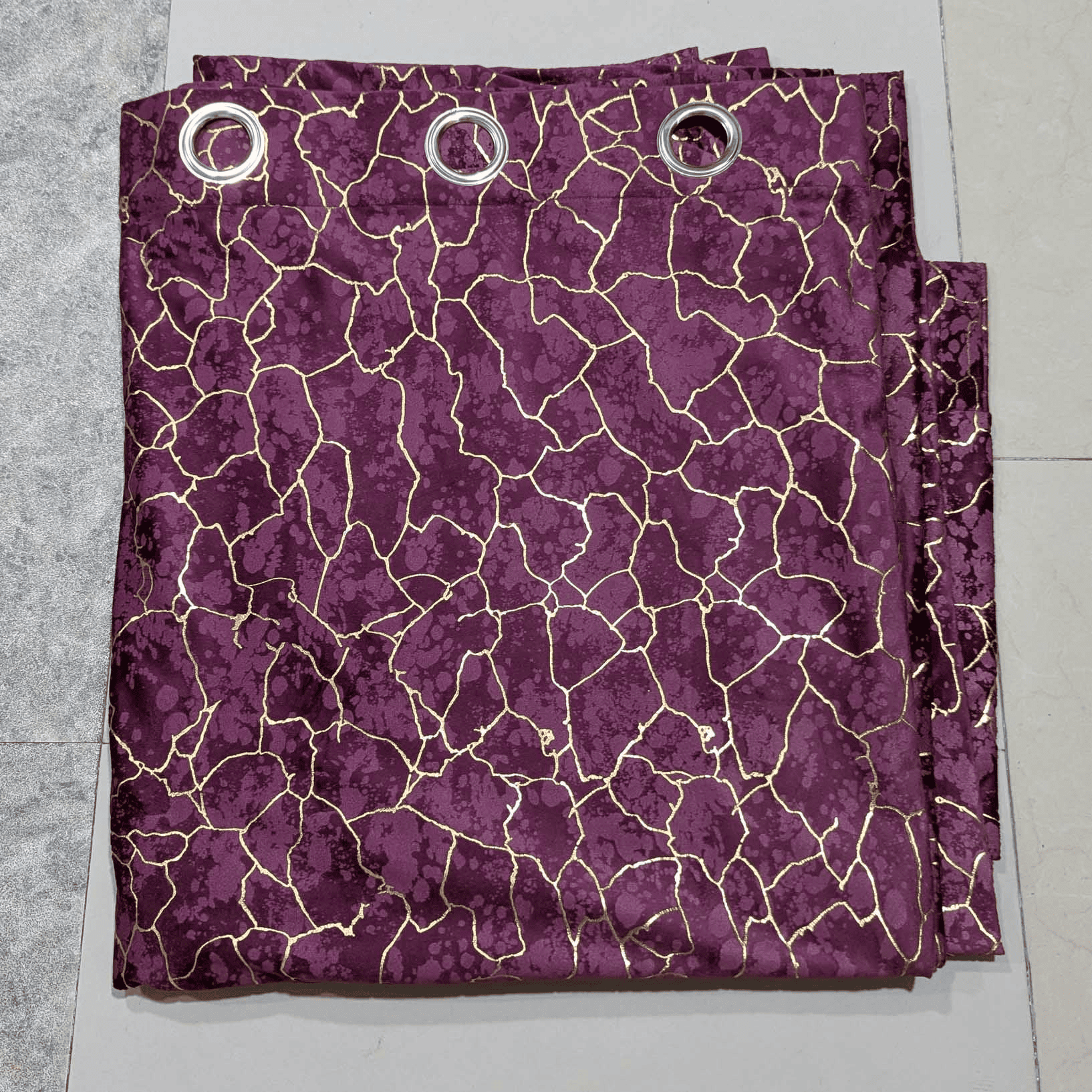 Premium Golden Textured Velvet Curtain - Purple